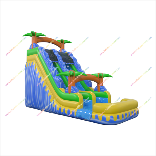 Backyard Waterslide Jumps Inflatable Water Play Tropical Wave Slide Large Inflatable Pool Slide