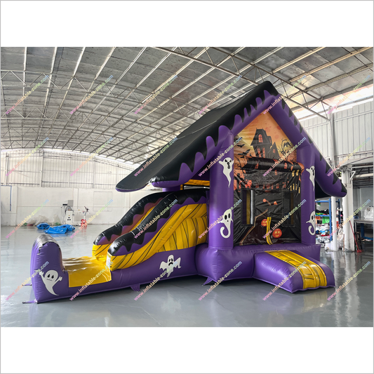 Halloween Themed Bounce House Big Slide Inflatable Obstacle Bouncy Castle Hire Fun Amusement Park Near Me